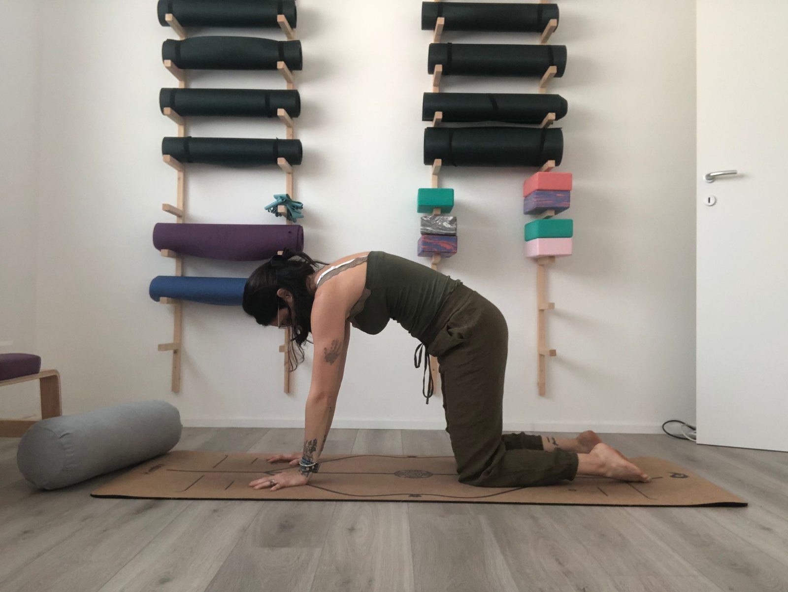 Prima o poi durante la gravidanza il mal di schiena si fa sentire ed è anche del tutto normale se si pensa al lavoro eccessivo a cui la spina dorsale è improvvisamente sottoposta. Per far fronte a questo possiamo usare un esercizio yoga che serve per massaggiare dolcemente la colonna vertebrale. Questa a differenza di molte altre posizioni statiche, è un esercizio dinamico, ed il continuo arrotondamento della schiena fa si che molti dolori si affievoliscono o addirittura scompaiono del tutto. Inoltre in questa posizioni i bimbi sono appoggiati su tutta la parte morbida della pancia quindi per loro è come stare su una coccolosa amaca.